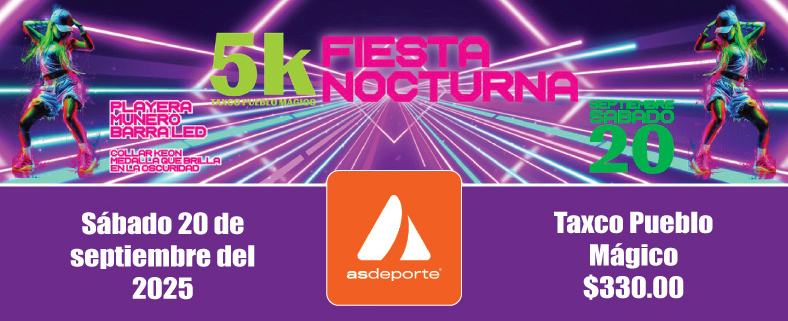 Participa, corre, grita, camina, salta, baila, en nuestra edición de la Fiesta Nocturna Run 5 k, habrá luces neón, pintura glow, música para bailar y mucha diversión, en un entorno seguro y solo para ti en el Zócalo de Taxco Pueblo Mágico.