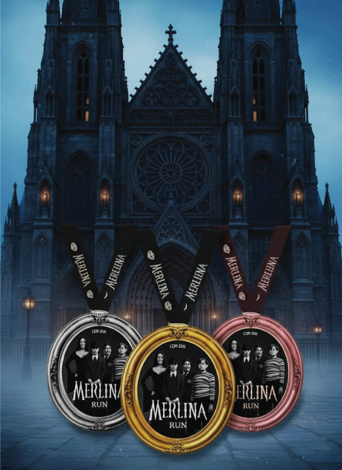 ¿Por qué es diferente? Temática de Merlina al 100%: No es solo correr, es una inmersión completa. ¡Vístete con tu mejor look gótico o tu uniforme más oscuro!