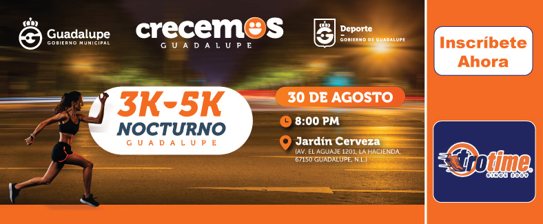 Parque Fundidora Adolfo Prieto S/N, Obrera, Monterrey, Nuevo Leon, Mexico5k ACERCA DEL EVENTO ORGANIZADOR: Trotime FECHA: Sábado 09 de agosto de 2025. SALIDA: 7:00 am LUGAR: Parque Fundidora, Monterrey, Nuevo Leon, México DISTANCIA: 5k INSCRIPCIONES: https://www.trotime.com.mx